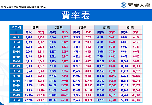 | 分齡保費: | |||||||